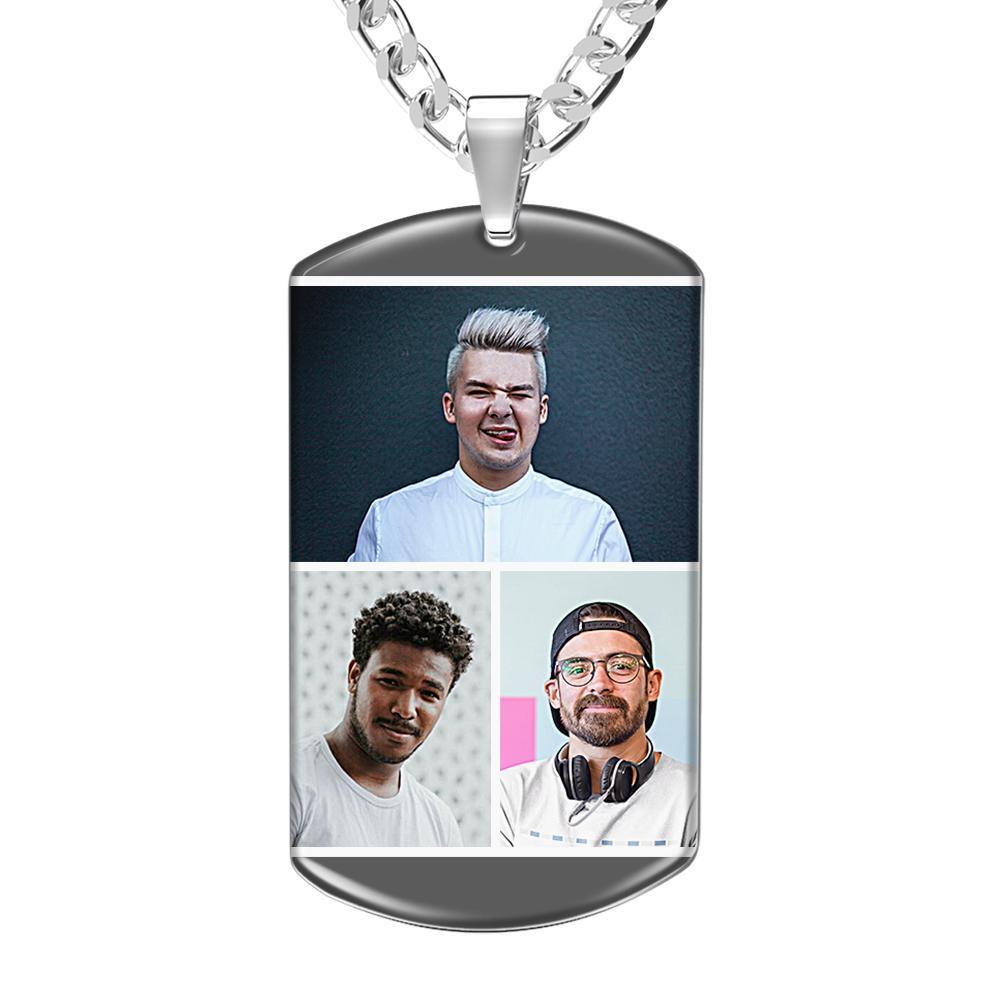 52% SCONTOCollana Tag Con Foto Incisa Con Incisione Effetto Colorato Grigio -