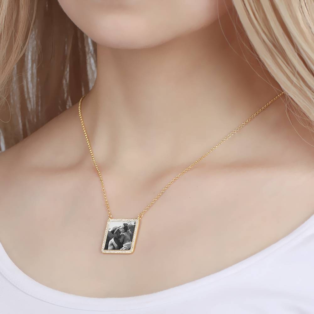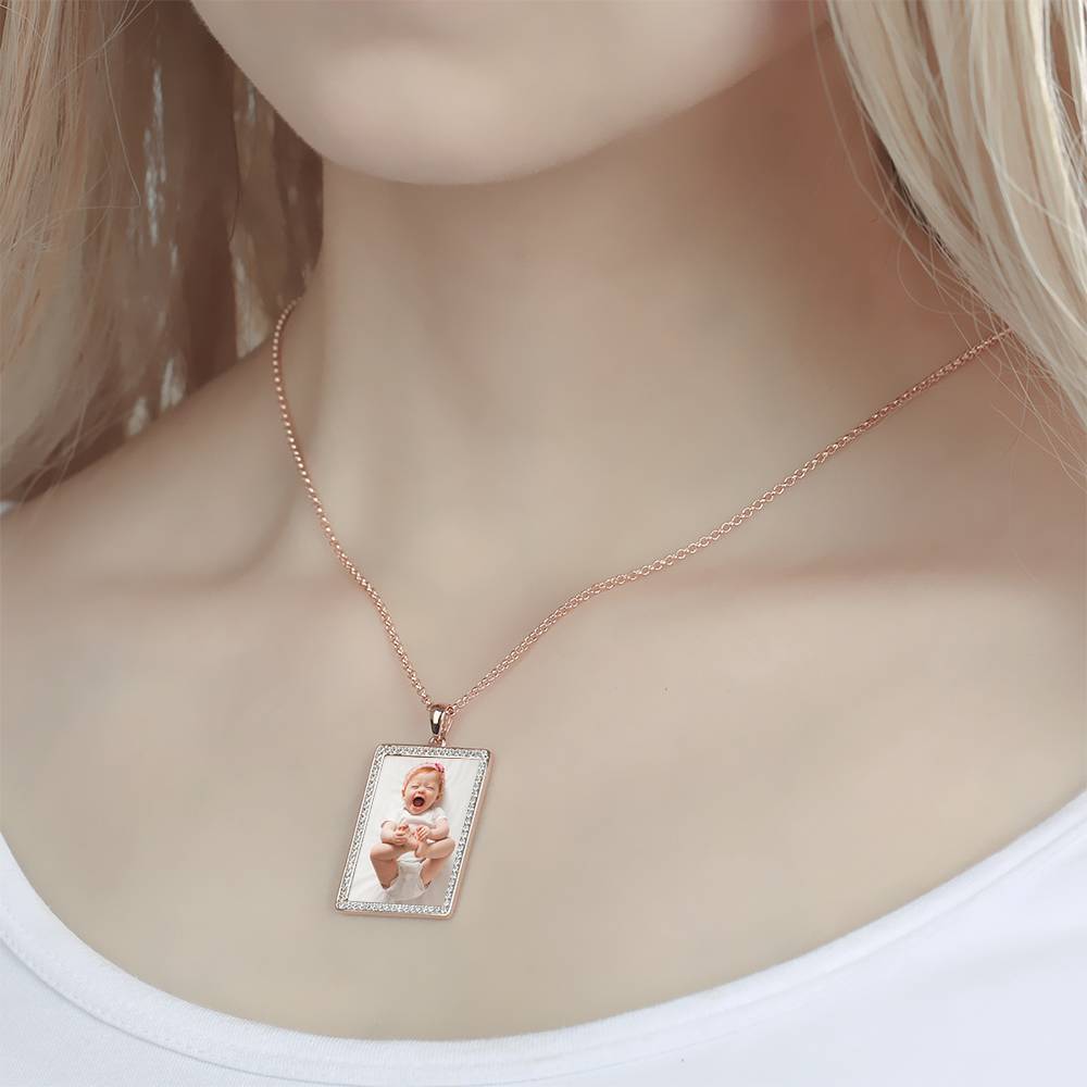 53% SCONTOCollana Con Incisione Di Foto, Collana Di Strass Commemorativa In Oro Rosa Placcato - Contorno