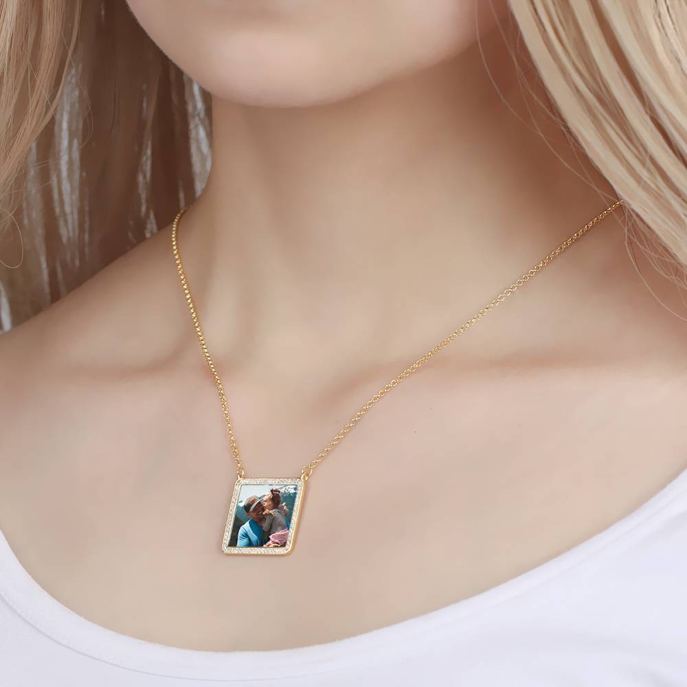 53% SCONTOCollana Con Incisione Di Foto, Collana Di Strass In Argento Placcato In Oro 14 Carati - Colorata -