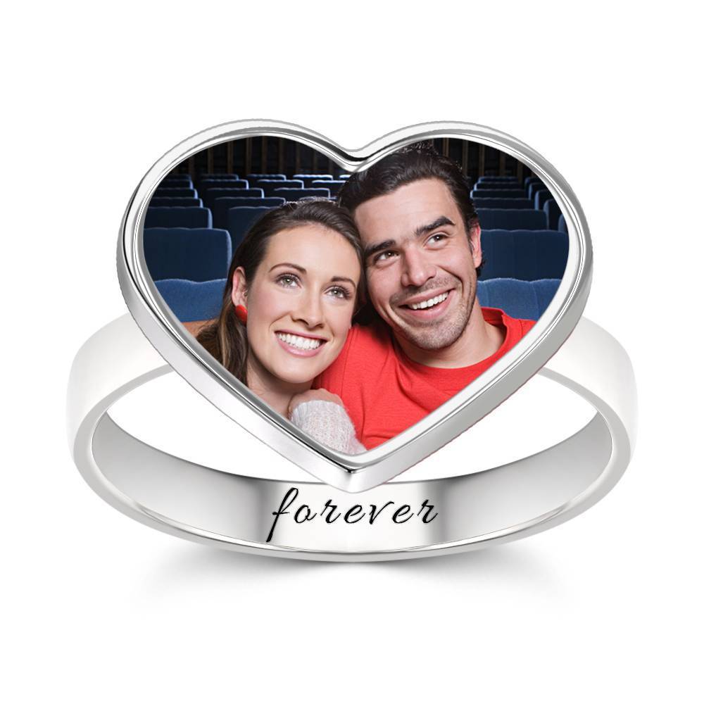 50% OFFAnello Fotografico A Cuore Con Incisione In Argento Regalo Per Coppia -