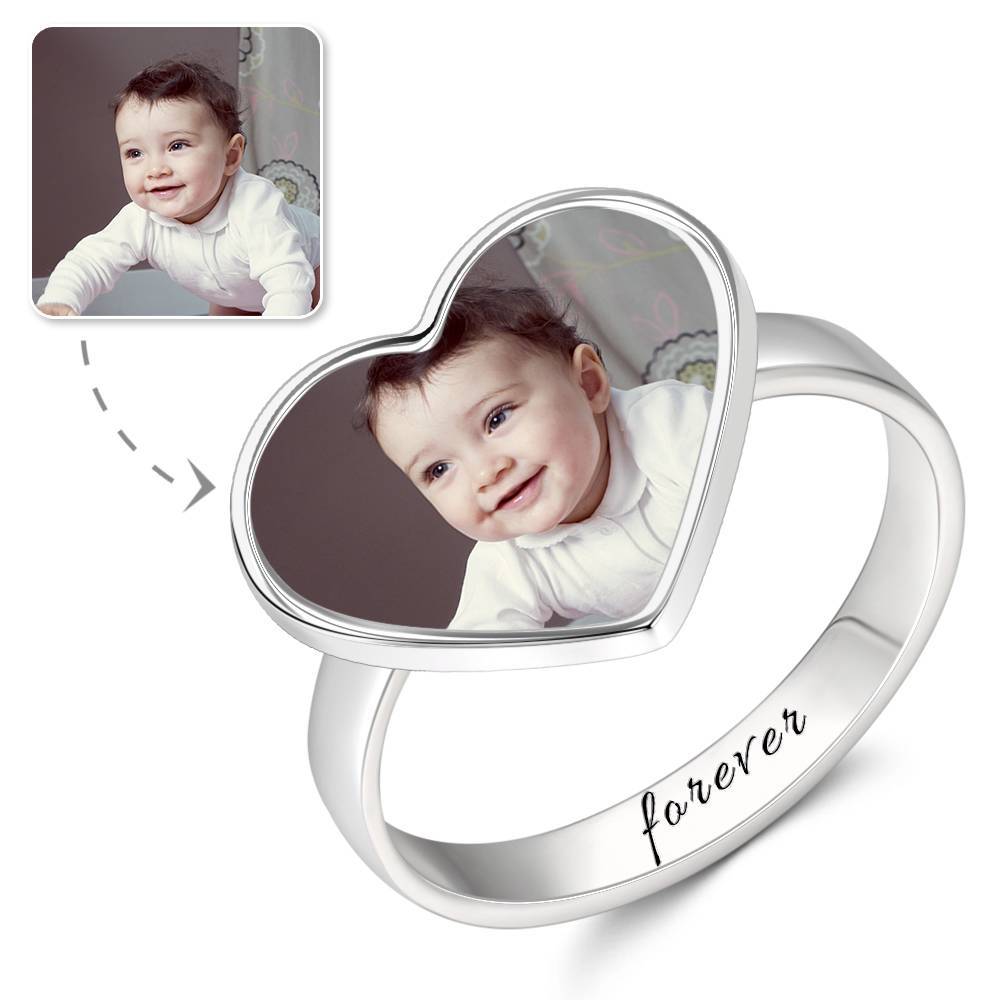 53% OFFAnello Fotografico A Cuore Con Incisione In Argento, Regalo Per La Madre -