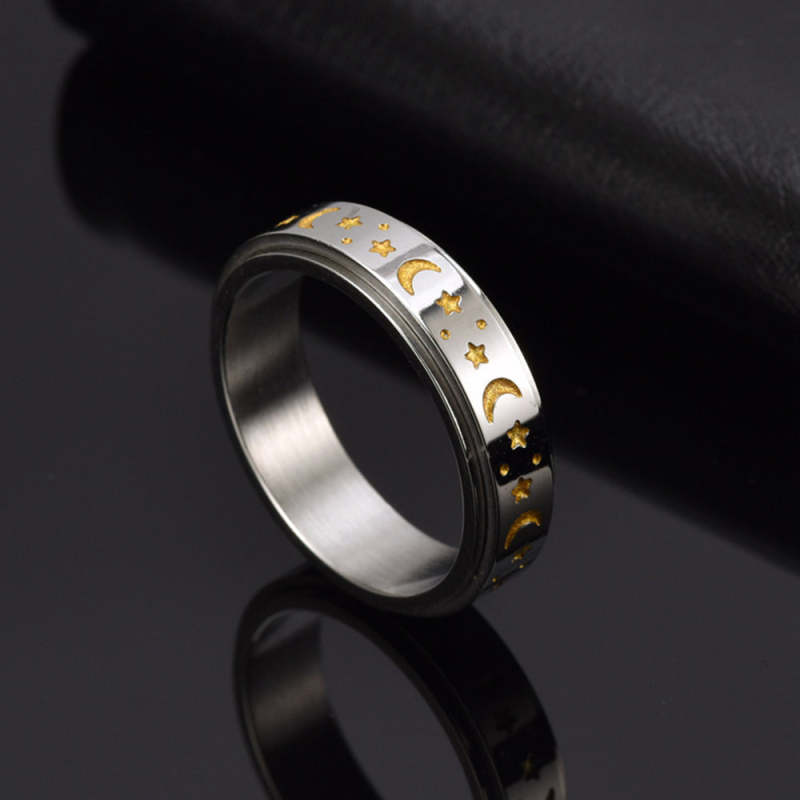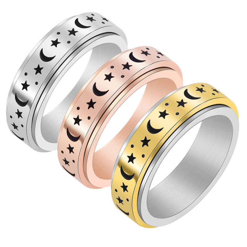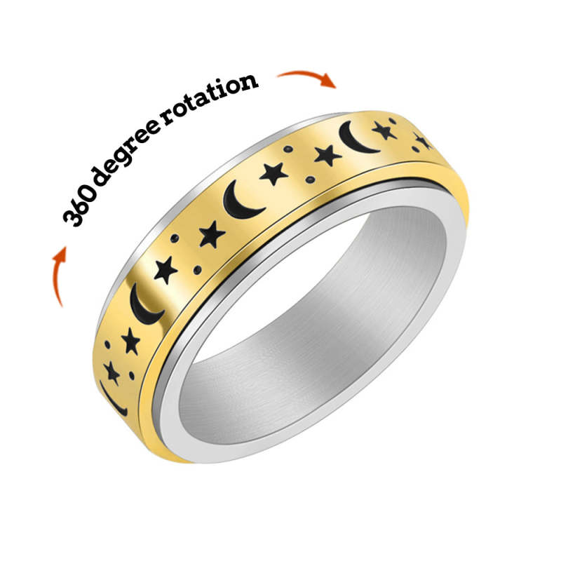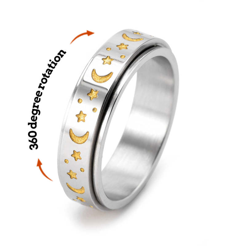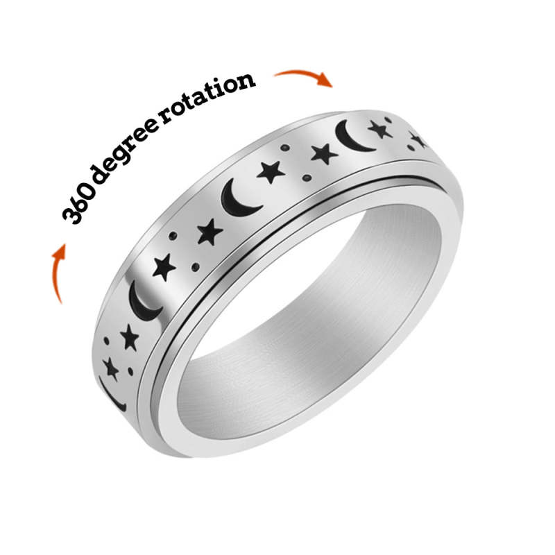 Anello alla moda e alla moda, design con spinner, perfetto per le persone che cercano protezione per liberare l'energia dell'ansia irrequieta. Con il design Star Moon Anxiety, l'anello attirerà più attenzioni. Design dallo stile unico, pienamente in linea con il design dell'estetica umana, per mostrare il tuo fascino naturale.?Casa, ufficio, feste e abbigliamento quotidiano. Una scelta ideale per matrimoni, anniversari, regali di San Valentino, festa del papà, cocktail, fidanzamenti, compleanni. Adatto ad ogni occasione.