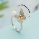 Farfalle carine e bellissime sono incastonate sull'anello. Anello elegante alla moda. La farfalla è un simbolo di energia e libertà. Questo anello a farfalla sembra molto attraente sotto il sole!