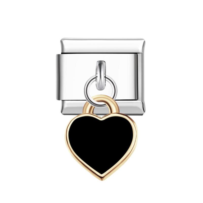 Charm Italiano Cuori Neri Per Braccialetti Con Charm Italiani Link Composable