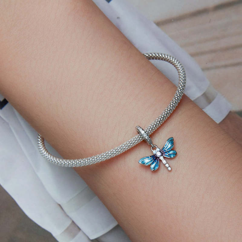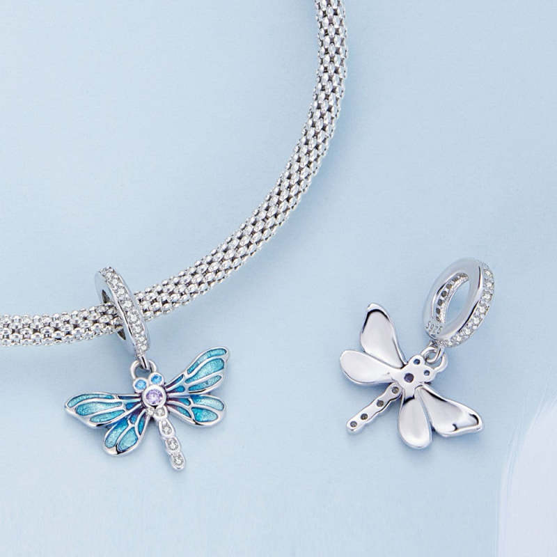 Charm Colgante Libélula Azul Plata