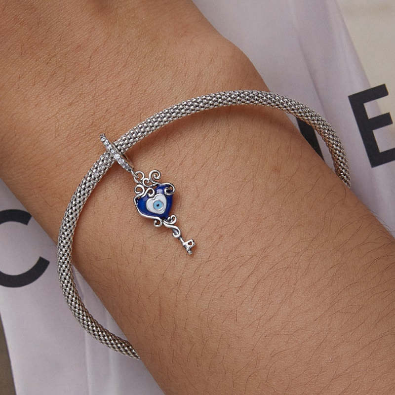 Ciondolo Pendente Malocchio A Cuore Blu In Argento