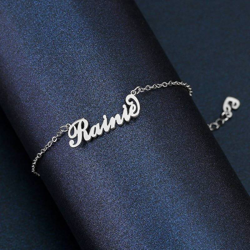 Nome Per Bambini: Cavigliera Placcato In Platino - Lunghezza Regolabile