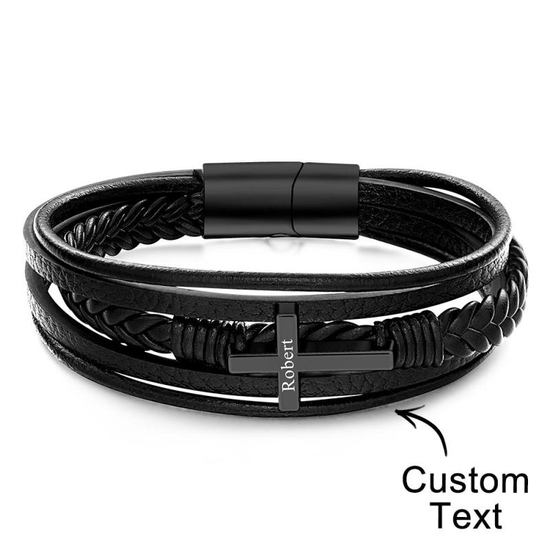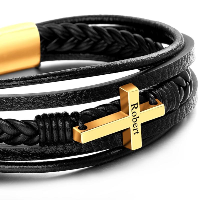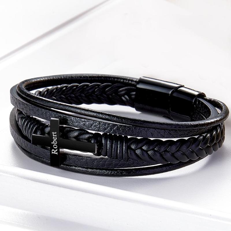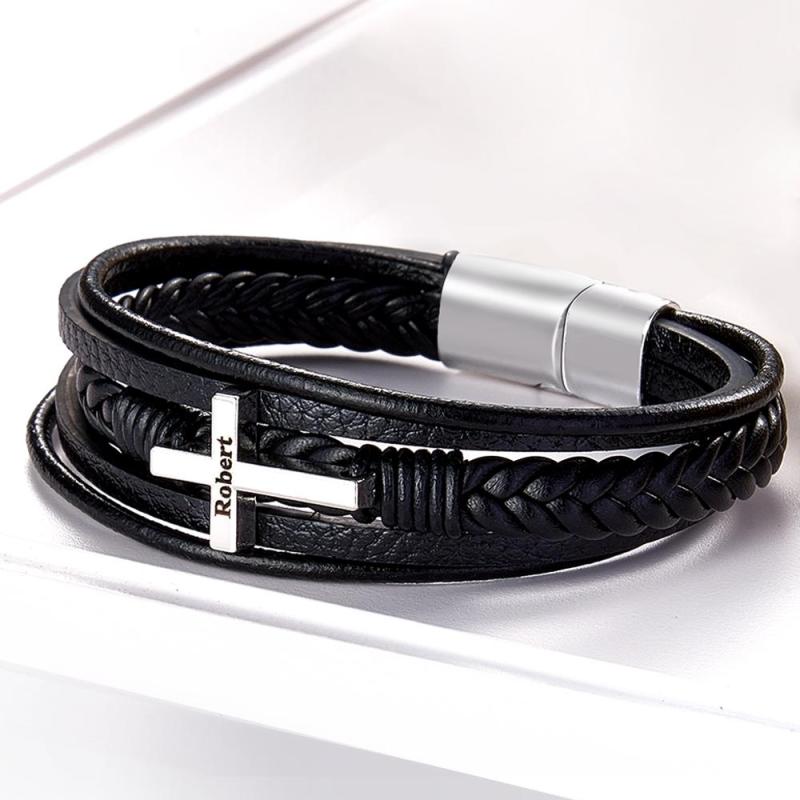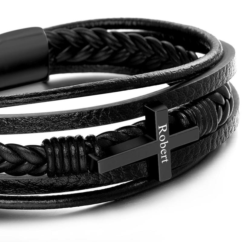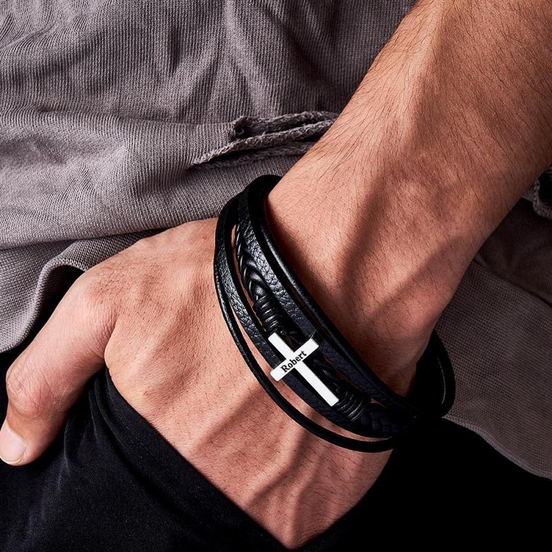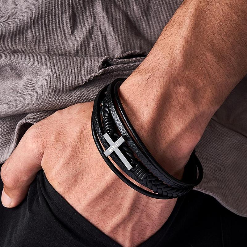 Bracciale da uomo in pelle di ispirazione con croce in acciaio inossidabile realizzato in vera pelle di alta qualità, ha una chiusura magnetica forte e molto facile da usare. Il braccialetto è lungo circa 21 cm, questo braccialetto è un ottimo promemoria per mantenere la calma e confidare in Dio nel mezzo dei tumulti che accadono in questo mondo. Non aver paura: Dio è con noi! Questo semplice braccialetto nero è super facile da indossare! Sta benissimo sia con abiti casual che eleganti, aggiungendo un tocco finale ed elegante per un look rifinito, pulito e moderno. E questo non è solo un modo pratico ma anche bello per portare con sé un pensiero o un'ispirazione. Articolo regalo perfetto! Edizione limitata, prendine uno prima che finiscano!