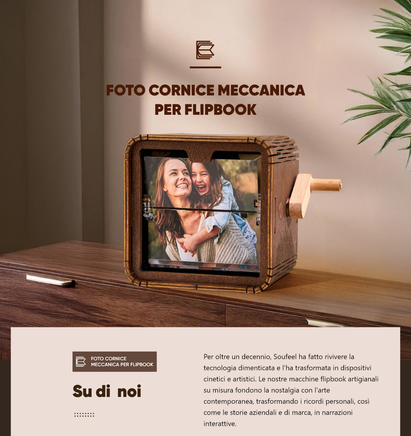 Celebra e custodisci i momenti più belli della vita con la nostra cornice portafoto a flipbook con illuminazione a manovella.Questo splendido ricordo è più di un semplice album: è un tesoro personalizzabile che mette in risalto la crescita e le tappe più importanti della tua famiglia.