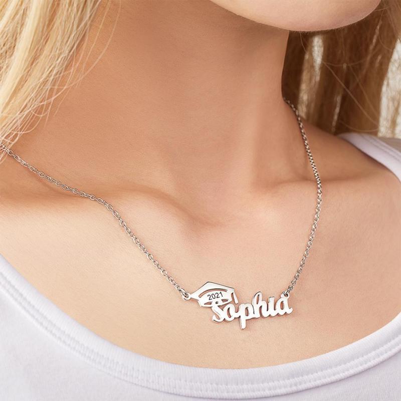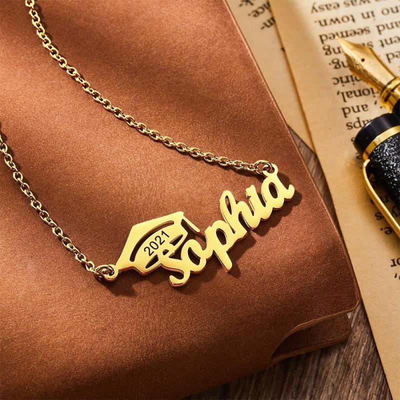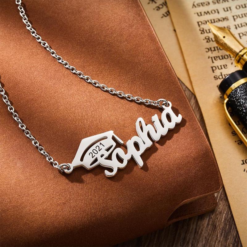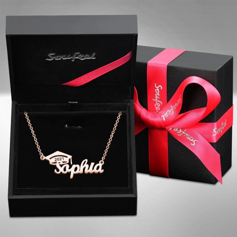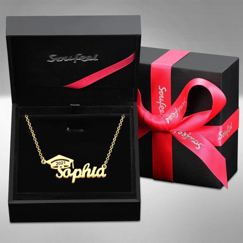 Design del prodotto: questa collana con nome combina abilmente gli elementi del cappello da scapolo nel design, rendendolo non solo semplice e generoso, ma ha anche un significato unico.