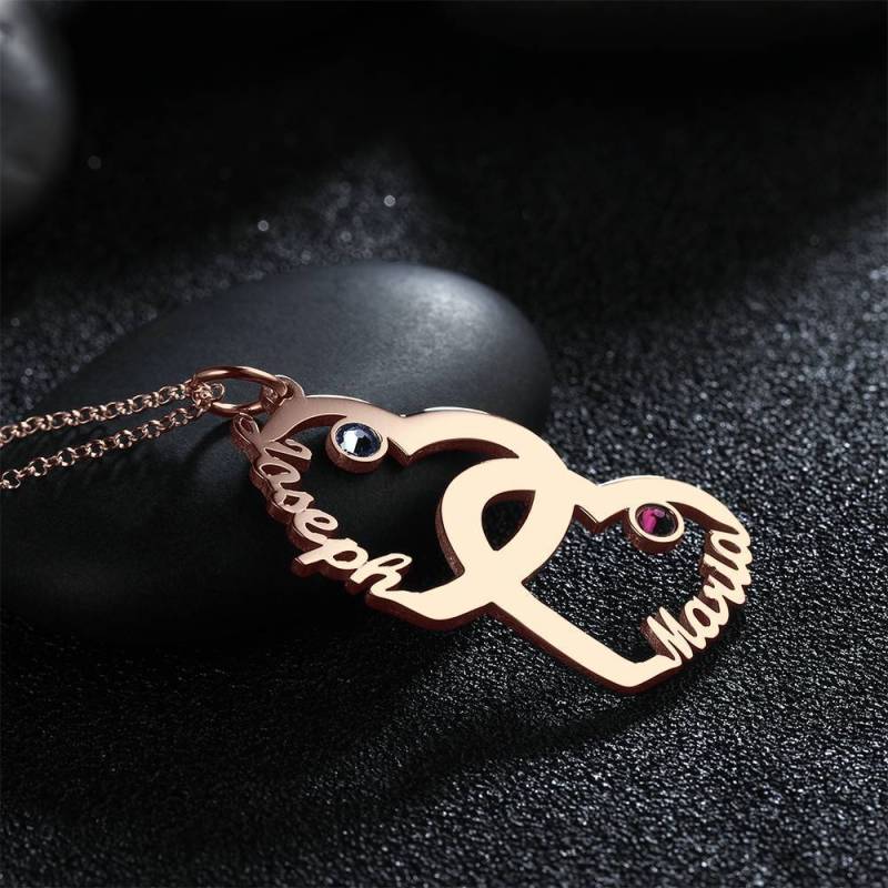Collana Personalizzata Birthstone, Nome Collana A Forma Di Cuore Placcato In Oro Rosa - Argento