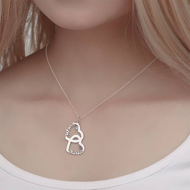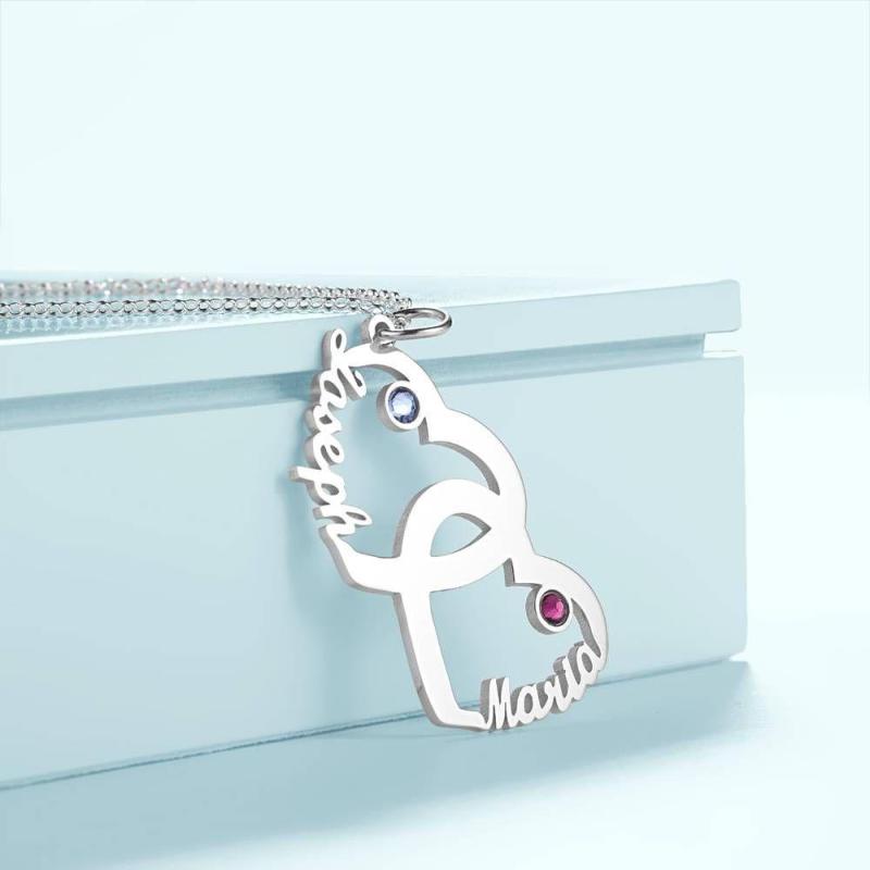 Collana Personalizzata Birthstone, Nome Collana A Forma Di Cuore In Argento
