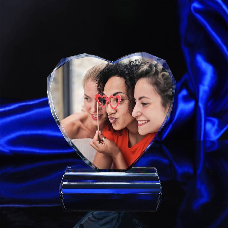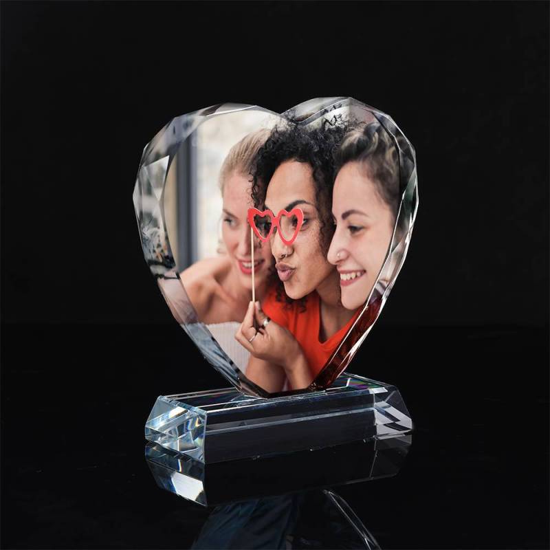 Cornice Per Foto In Cristallo Personalizzata A Forma Di Cuore Illumina I Migliori Amici