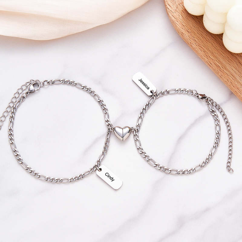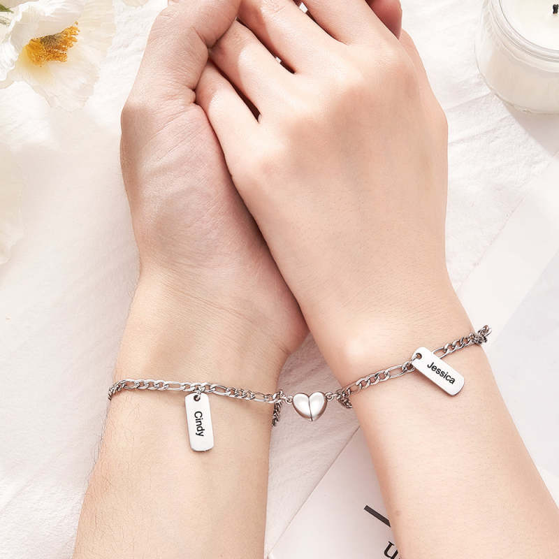 Bracciali Inciso Personalizzati Con Cuore Magnetico, Catena Semplice, Regalo Per Coppie