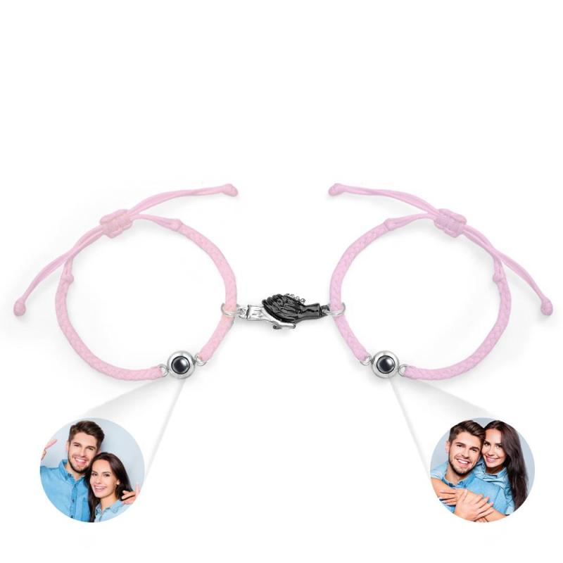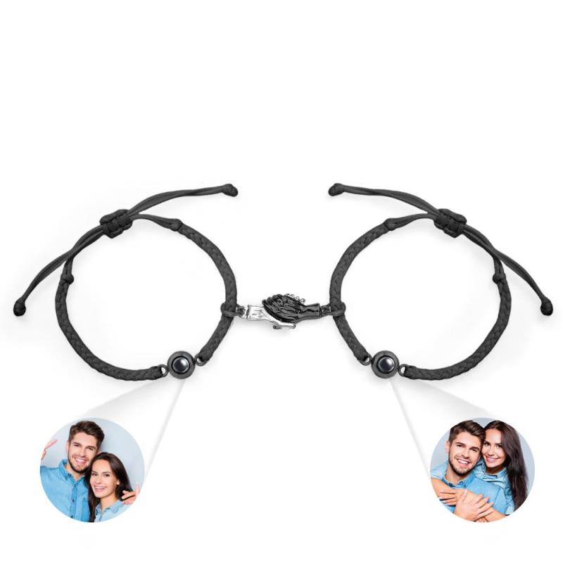 Bracciale Inciso Personalizzato Regalo Di Coppia Con Stretta Magnetica Della Mano