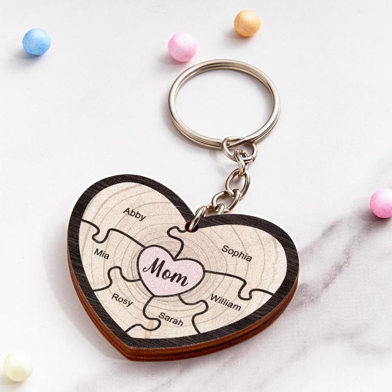 Questo è un portachiavi puzzle in legno, che può essere inciso con i nomi di 1-6 bambini. È un buon regalo souvenir per i membri della famiglia. Dai ai tuoi cari grandi sorprese con il nostro portachiavi. Queste piccole cose li renderanno sicuramente felici e impressionati.