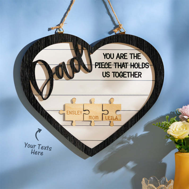 Il segno puzzle del nostro papà, tu sei il pezzo che ci tiene insieme, è il regalo perfetto per anniversario, compleanno, festa della mamma, festa del papà o qualsiasi altra festa! Tuo padre è il pezzo che tiene unita la tua famiglia? Se è così, dimostragli quanto ci tieni con questo regalo premuroso e personalizzato che sarà sicuramente apprezzato per gli anni a venire.