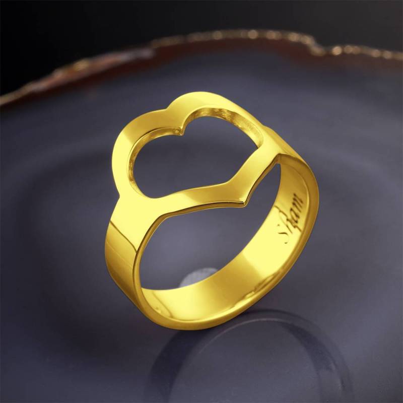 Anello Inciso Personalizzato Con Cuore Carino Placcato In Oro 14k