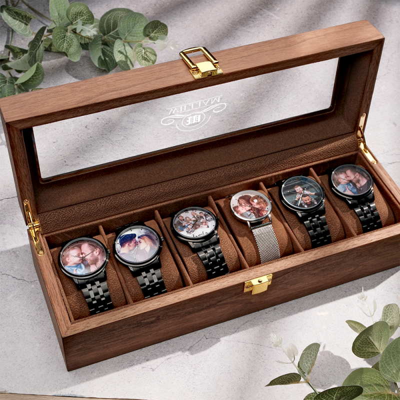 La nostra custodia per orologi personalizzata con incisione conferisce un aspetto lussuoso che lo farà sentire come un re e manterrà tutti i suoi orologi al sicuro e facili da trovare quando necessario. Realizzate da artigiani orgogliosi della loro lavorazione, queste scatole sono abbastanza eleganti da poter essere esposte anche quando sono vuote. Puoi personalizzare facilmente la scatola dell'orologio con iniziali o parole brevi per farla sembrare davvero speciale!