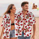 Camicia Stile Hawaiano Con Viso Personalizzato, Divertente Outfit Da Coppia Con Labbra Rosse