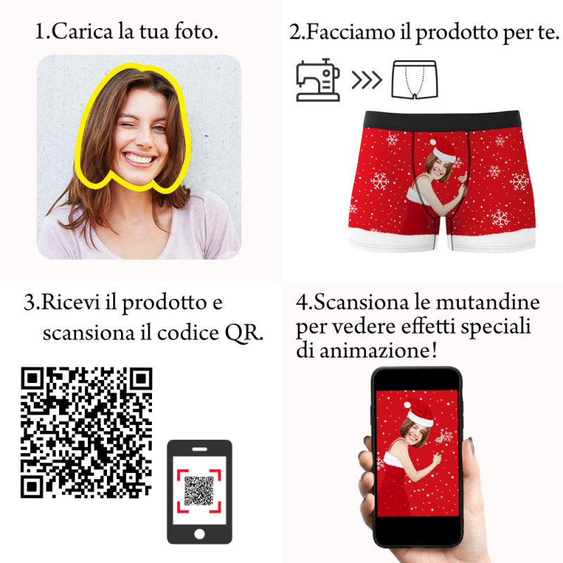Idee Regalo Di Natale, Intimo Natalizio Da Uomo Viso Personalizzato Face On Body Boxer