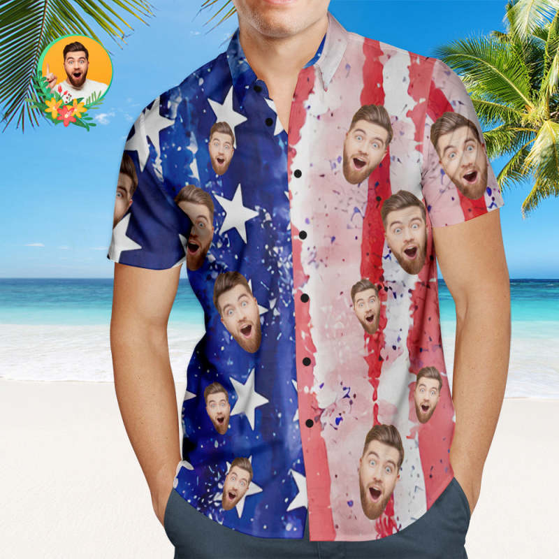 Camicia Hawaiana Patriottica Da Uomo Con Faccia Personalizzata Camicia Hawaiana A Maniche Corte Traspirante Casual