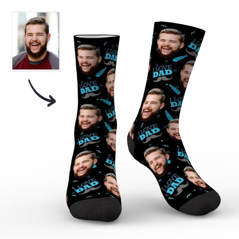 Calzini Personalizzati Con Foto, I Love Dad Face Blue Socks