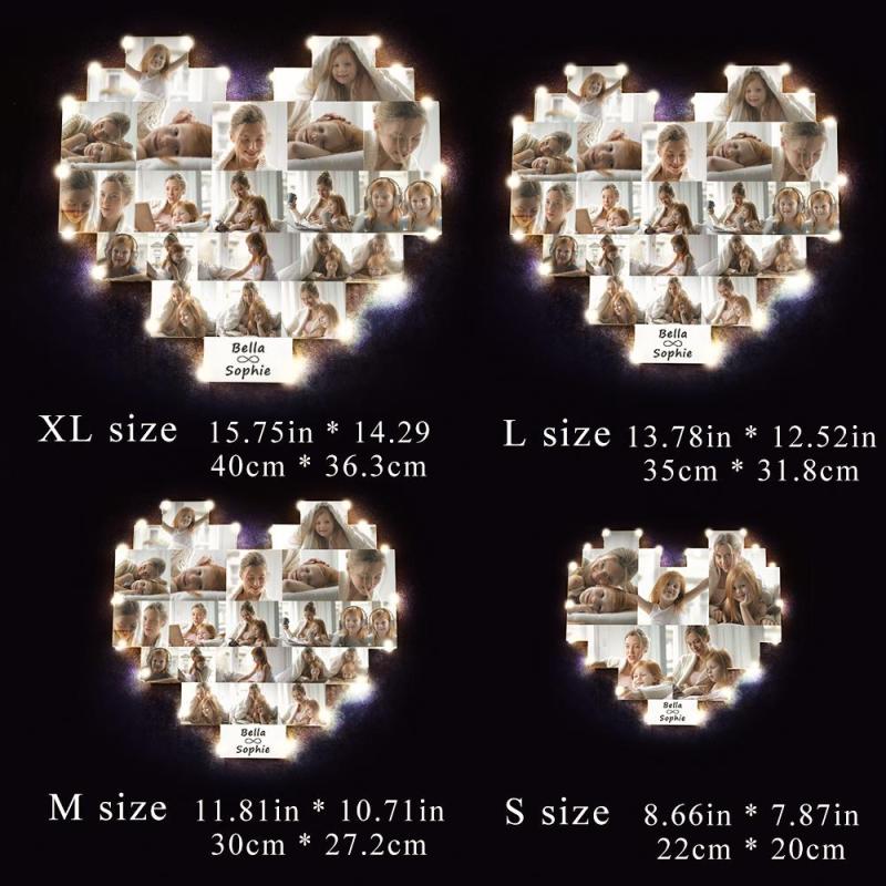 Ti piacerebbe sorprendere il tuo amante con un pannello led illuminato? Usando i tuoi momenti indimenticabili con il tuo amante all'interno di un pannello a cuore, abbiamo preparato per te uno speciale design a cuore illuminato. Puoi scegliere da 5 a 23 fotografie da utilizzare in uno speciale piatto a forma di cuore. E puoi personalizzare il tuo nome e quello del tuo amante sulla cornice. Con la stampa UV, stampiamo le tue foto con la migliore qualit¨¤. Hai due opzioni tra lampada da parete e lampada da tavolo. Una volta ricevuto, pu¨° essere appeso al muro o posizionato immediatamente sul tavolo. Non ¨¨ necessario eseguire alcuna azione aggiuntiva per l'installazione. Le foto inviate al momento dell'ordine sono da noi ordinate in base alla risoluzione e alle dimensioni delle tue foto. Pertanto, la sequenza delle foto sul prodotto viene modellata secondo la cornice pi¨´ adatta sul pannello. Soddisfare il tuo amante o la tua ragazza ¨¨ facile come un regalo. Nota: a causa delle normative sul trasporto aereo che le batterie al litio non possono essere spedite per via aerea, l'articolo viene spedito al cliente senza batteria.