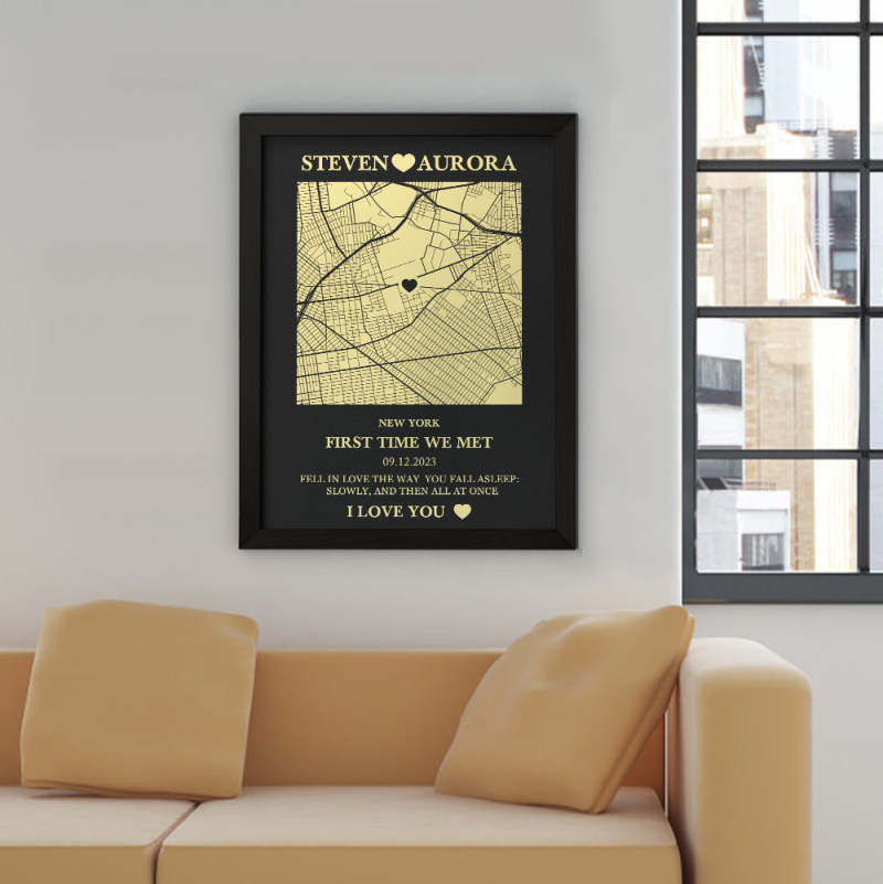 Mappa Personalizzata, Cornice In Legno, Testo Personalizzato, Decorazione Da Parete, Regalo Per L'anniversario, Dove Tutto Ha Avuto Inizio
