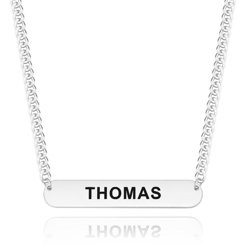 Niente è più chic di una semplice catena in grassetto! Questa collana ha un carattere più delicato rispetto alla nostra normale collana con nome personalizzato, quindi si adatta perfettamente come una collana girocollo. Personalizza questo con qualsiasi nome o parola di tua scelta. Punk per uomo d'affari - Collana con incisione collana con bracciale da uomo personalizzato - Argento