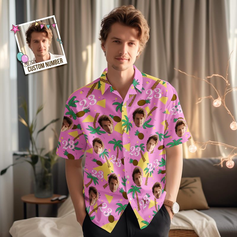 Viso E Numeri Multicolori Personalizzati Camicia Hawaiana Regalo Di Compleanno Per La Festa Del Papà Regalo Di Cocco E Ananas Per Papà