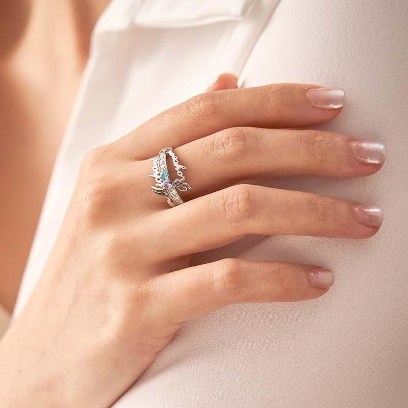 Regalo Personalizzato Per L'anniversario Dell'anello Di Promessa Con Nome E Testo Personalizzati Con Pietra Portafortuna A Doppio Cuore
