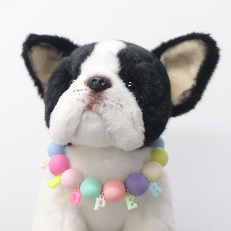 La collana con nome personalizzato per cani e gatti è un collare per cani femminile con perline arcobaleno. Questo grazioso collare colorato è perfetto per una festa dai colori pastello o per festeggiare il compleanno di una cagnolina. Questo elegante collare per cani è elastico.