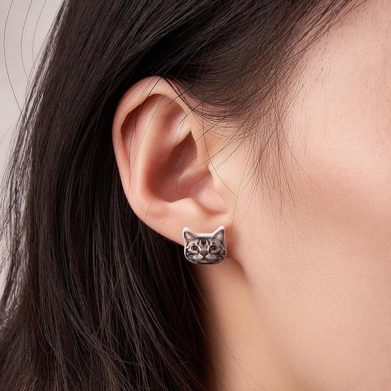 Orecchini Personalizzati Per Il Viso Di Un Animale Domestico Orecchini A Bottone Personalizzati Con Foto, Regali Anti-allergia Per Lei