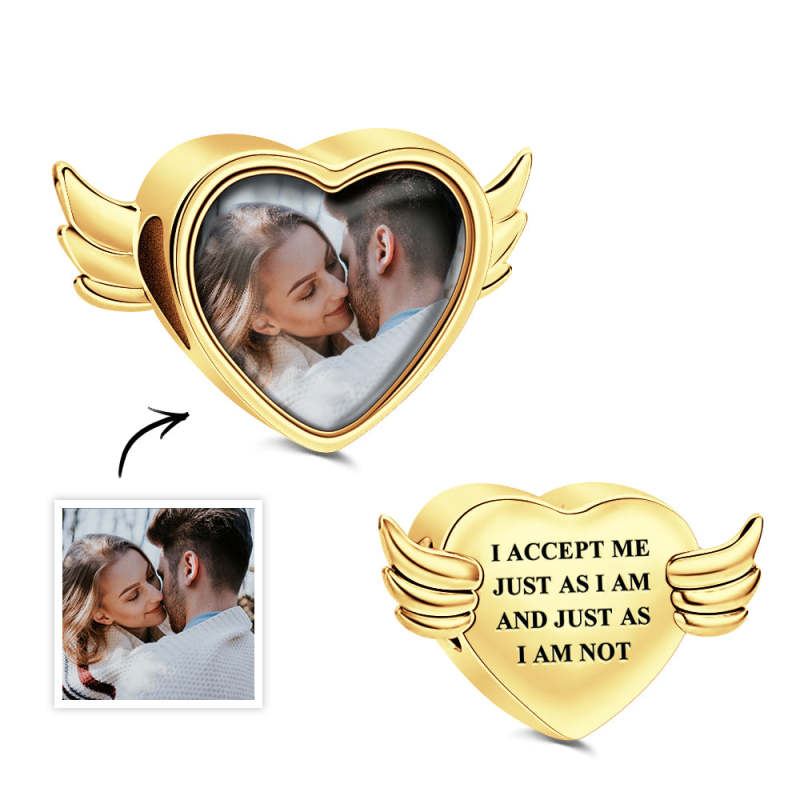 Ciondolo Fotografico Personalizzato Cuore Con Ali Aperte D'angelo