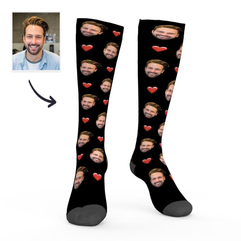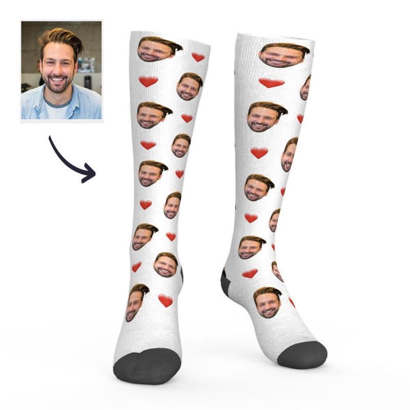 Calzini Al Ginocchio Personalizzati Con Foto Con Cuore 9cm x 56cm