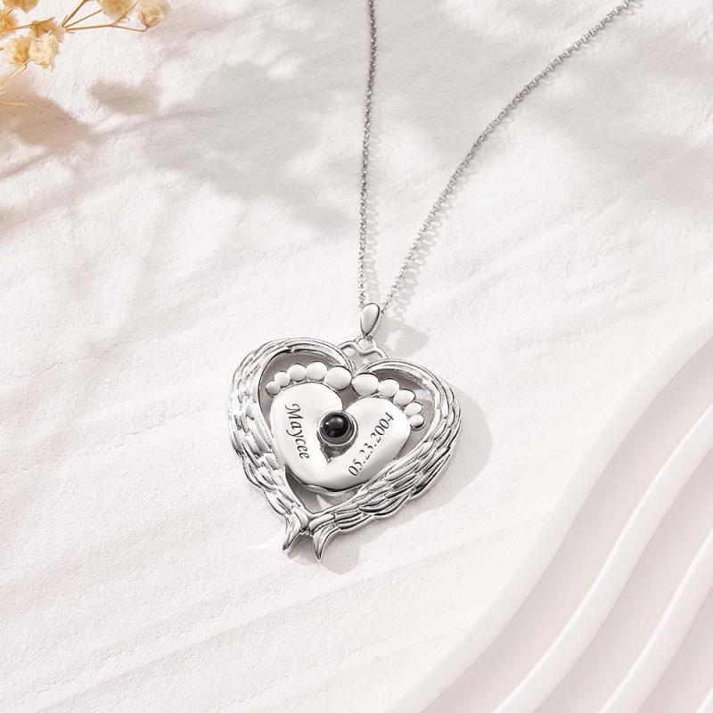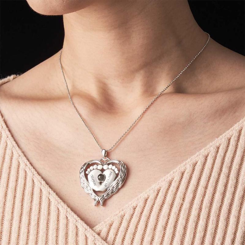 Collana Con Nome Di Proiezione Personalizzata Ali D'angelo Piedi Di Bambino Regalo Per La Mamma
