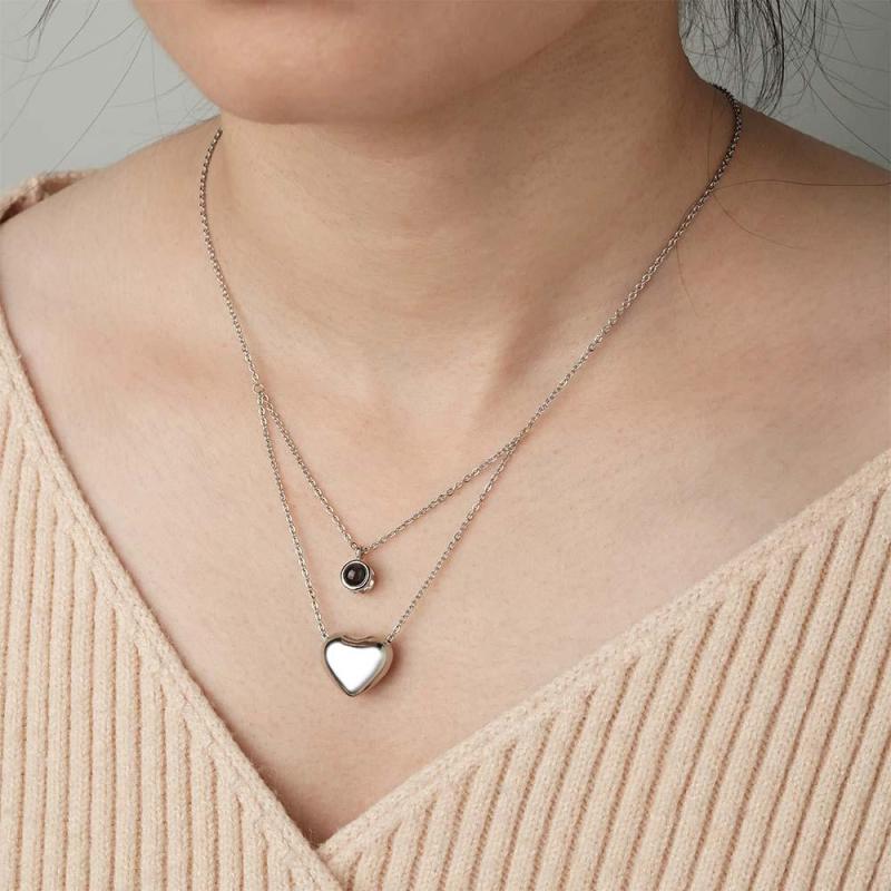 Collana Con Proiezione Personalizzata Regalo Per Coppia Con Cuore A Doppio Strato