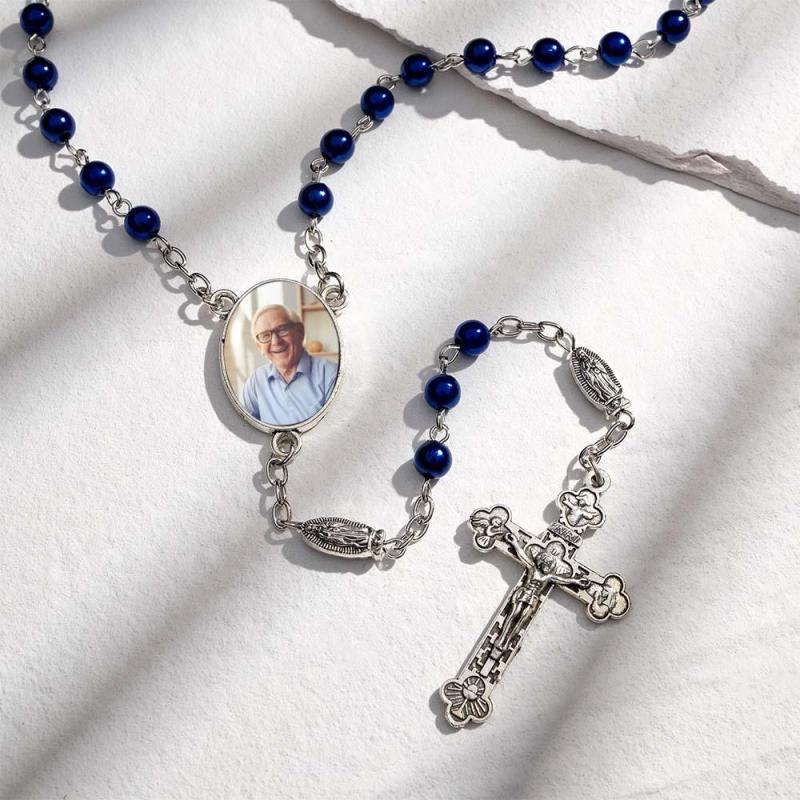 Collana Con Croce Di Perline Di Rosario Personalizzata Collana Di Perle Finte Blu Personalizzata Con Foto