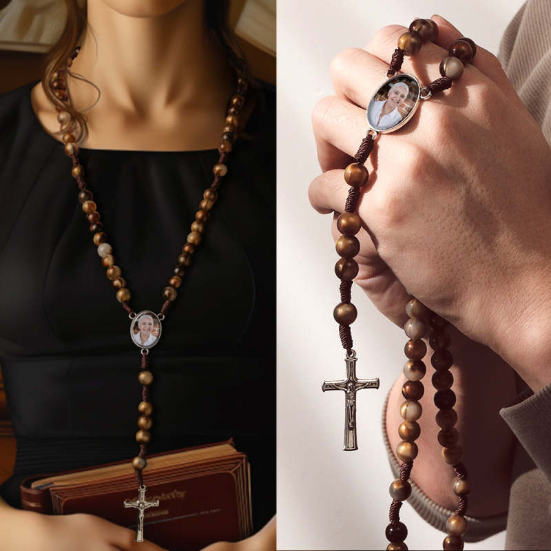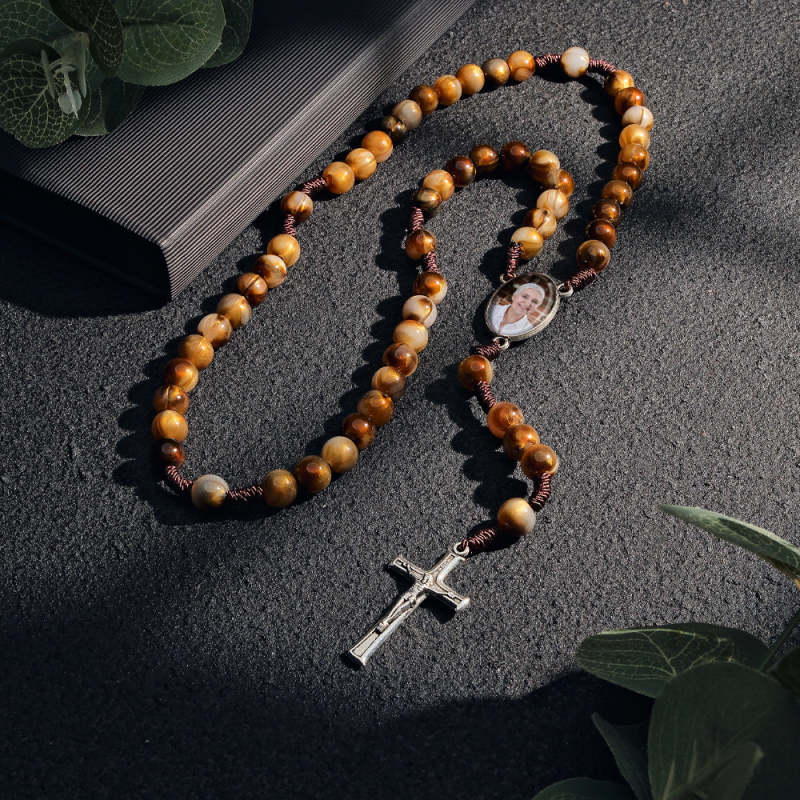 Collana Con Croce Di Perline Di Rosario Personalizzata Collana Con Perline Di Agata Imitazione Personalizzata Intrecciata A Mano Con Foto