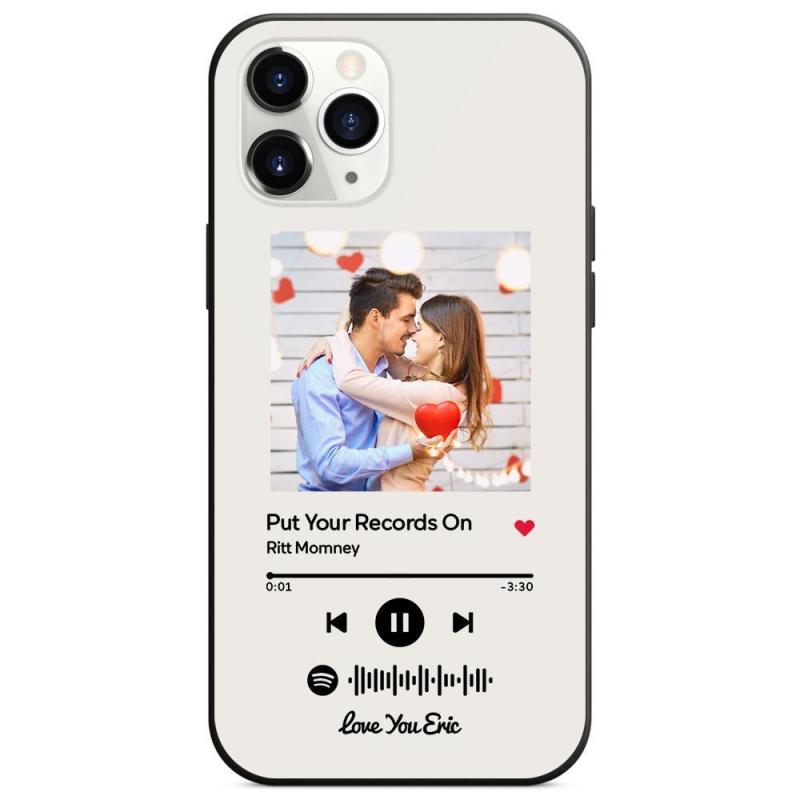 Custodia Personalizzata Per Iphone Con Codice Spotify Su Vetro Temperato Con Canzone Musicale Personalizzata - Bianco