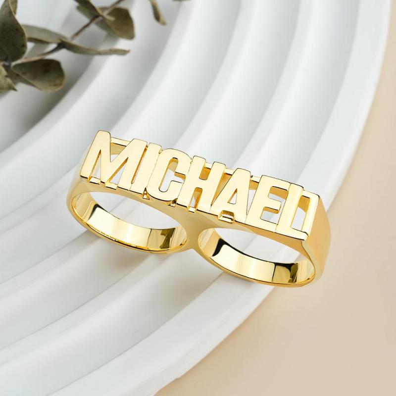 Anello Con Nome Personalizzato A Due Dita Anello A Doppia Fascia Da Uomo Personalizzato