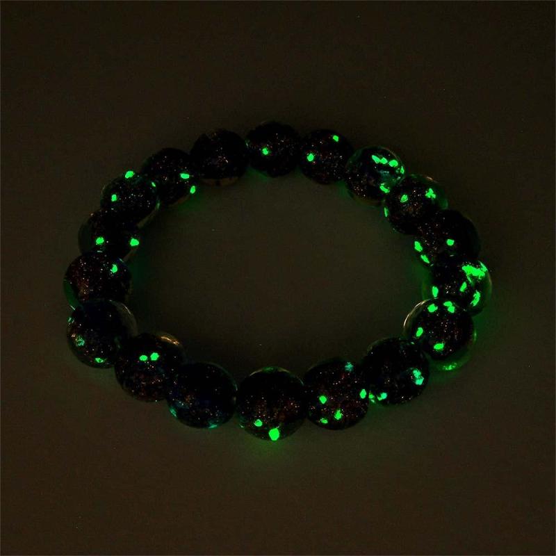 Bracciale Con Perline Elasticizzate In Vetro Lucciola Blu Scuro. Bracciale Luminoso Che Si Illumina Al Buio