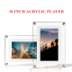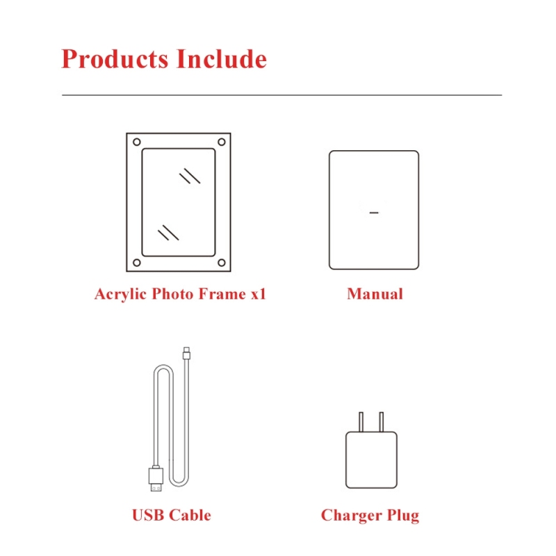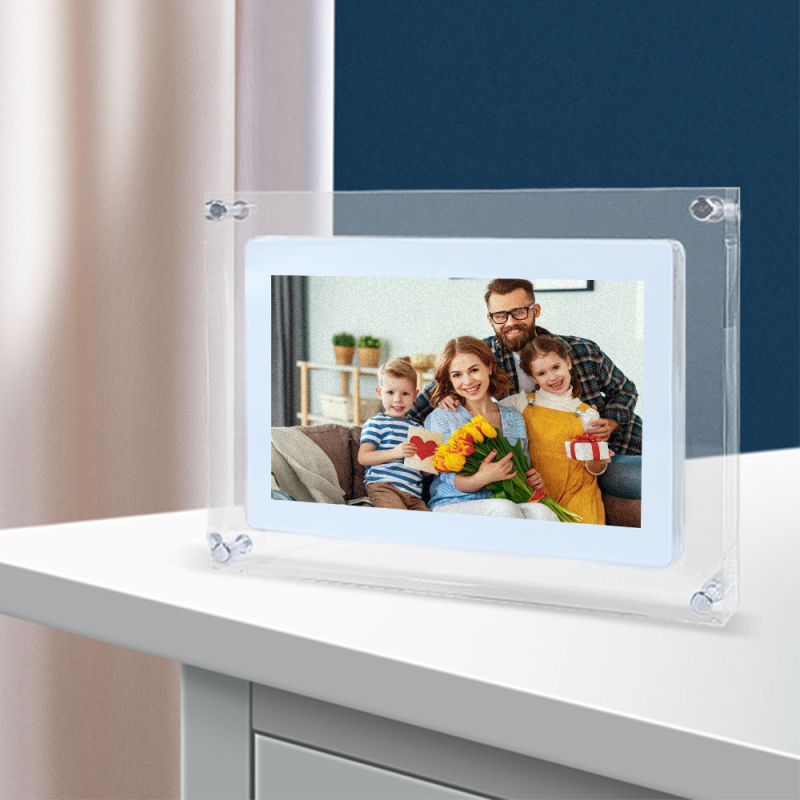 Vi presentiamo la nostra elegante e moderna cornice per foto digitali in acrilico. Può riprodurre video e foto. Collegalo al computer per caricare foto o video. Basta inserirlo nel disco rimovibile (il formato deve essere supportato da questo prodotto). Può aiutare a impedire alle persone di aggiungere o eliminare. Il prodotto include una cornice per foto in acrilico, un manuale di istruzioni, un Cavo USB e presa per caricabatterie.