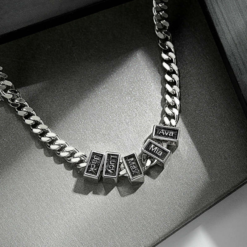 Scopri il fascino unico e lo stile distintivo delle collane cubane che aggiungono una personalità unica ai tuoi accessori moda. Questa collana ha un design unico. Puoi scegliere tra 1-6 pendenti in metallo. Ogni pendente può essere personalizzato con testo personalizzato, aggiungendo un elemento profondamente personalizzato ai tuoi gioielli.