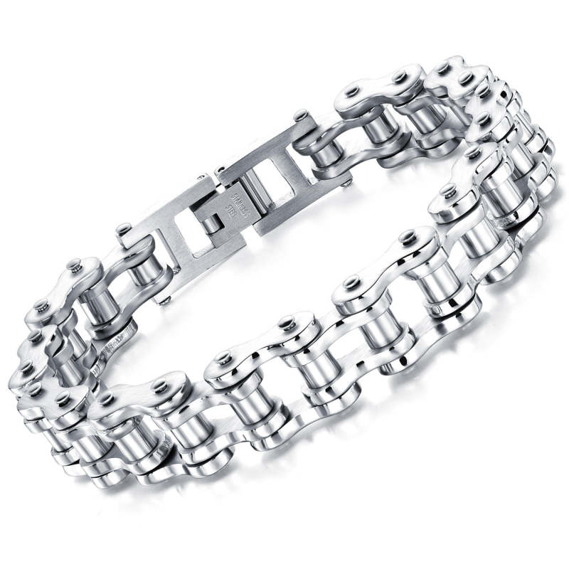 Questo è un braccialetto da uomo con catena da motociclista alla moda, un accessorio indispensabile per uscire con stile. Questo braccialetto è realizzato in acciaio di alta qualità, resistente alla corrosione e alle alte temperature e può rimanere liscio e piatto per un uso a lungo termine. Design semplice e creativo, lavorazione meticolosa. Le persone alla moda dovrebbero indossare capi così alla moda!