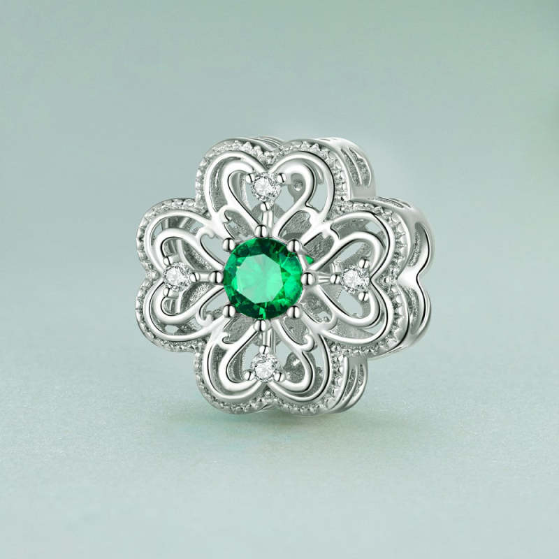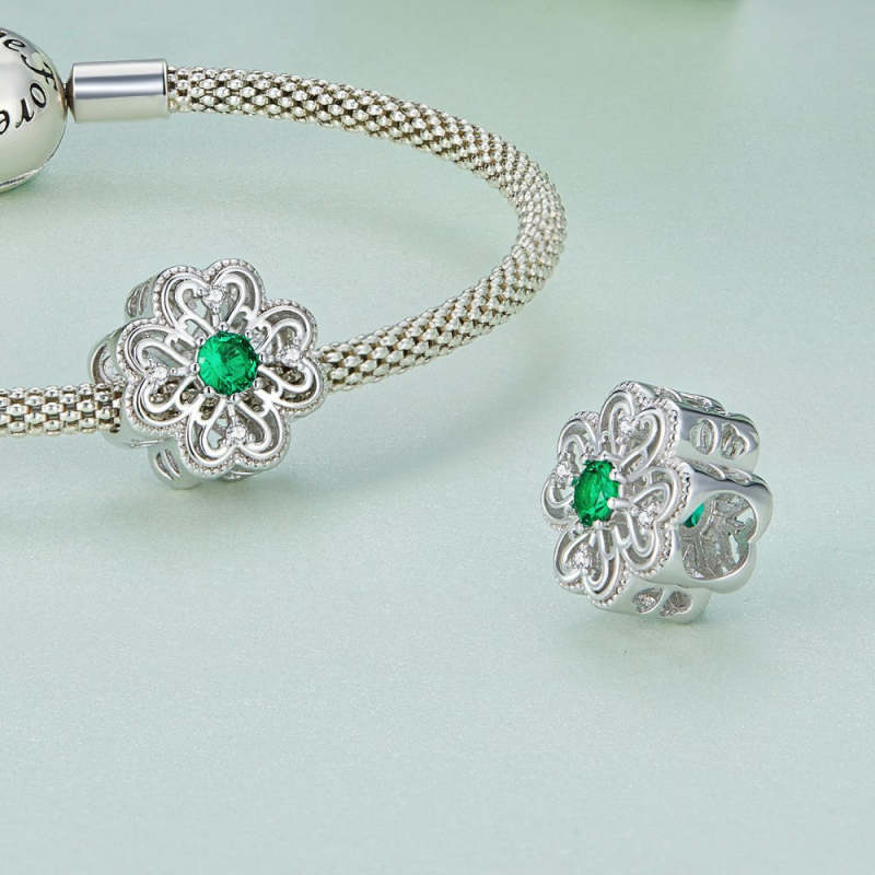 Charm Trébol de Cuatro Hojas Circonita Verde Plata