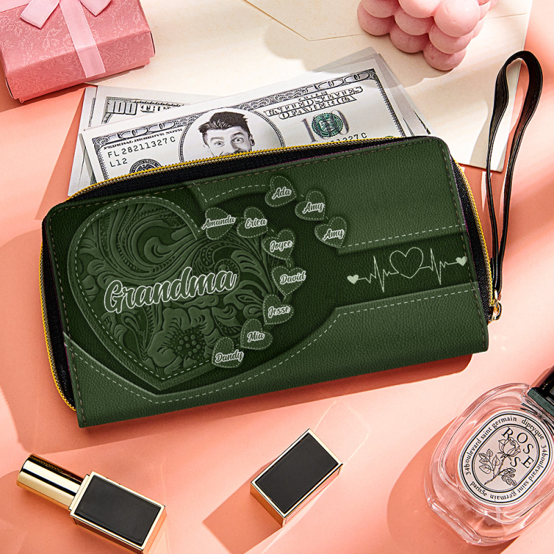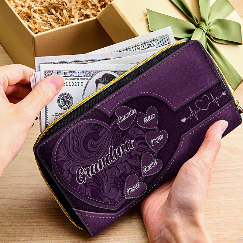 Crea ricordi duraturi per la tua nonna o mamma con il nostro portafoglio lungo in pelle personalizzato! Personalizza questo elegante portafoglio con il nome della nonna e il suo colore preferito per creare un regalo davvero unico e significativo. Realizzato con pelle squisita e meticolosa attenzione ai dettagli, questo portafoglio lungo è più di un semplice accessorio: è un simbolo di amore e apprezzamento che risuonerà profondamente nella nonna. Che sia per Natale, il suo compleanno, San Valentino, la festa della mamma o un anniversario, questo tocco personalizzato aggiunge un ulteriore strato di sentimentalismo che le scalderà il cuore. Con i suoi ampi scomparti e la sua struttura resistente, questo portafoglio è tanto pratico quanto bello. È perfetto per tenere a portata di mano carte, denaro e ricordi, diventando un prezioso compagno per le avventure quotidiane della nonna.