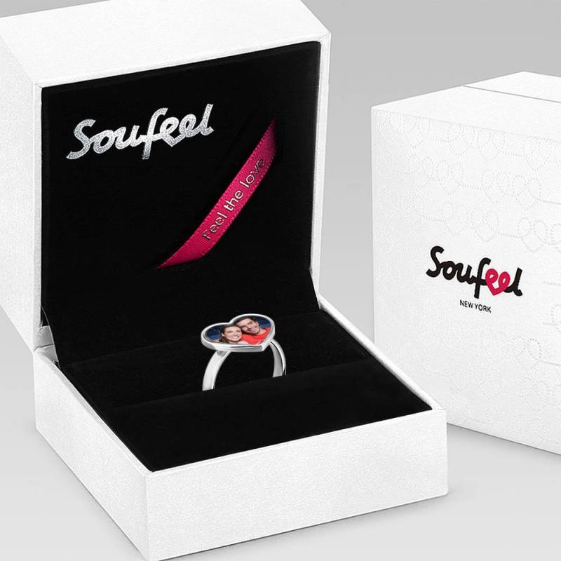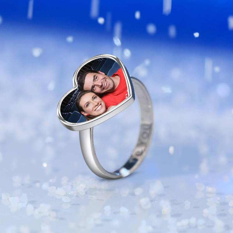 Anello Fotografico A Cuore Con Incisione In Argento Regalo Per Coppia