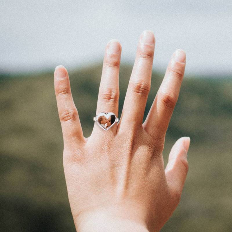 Anello Fotografico A Cuore Con Incisione In Argento, Regalo Per La Madre